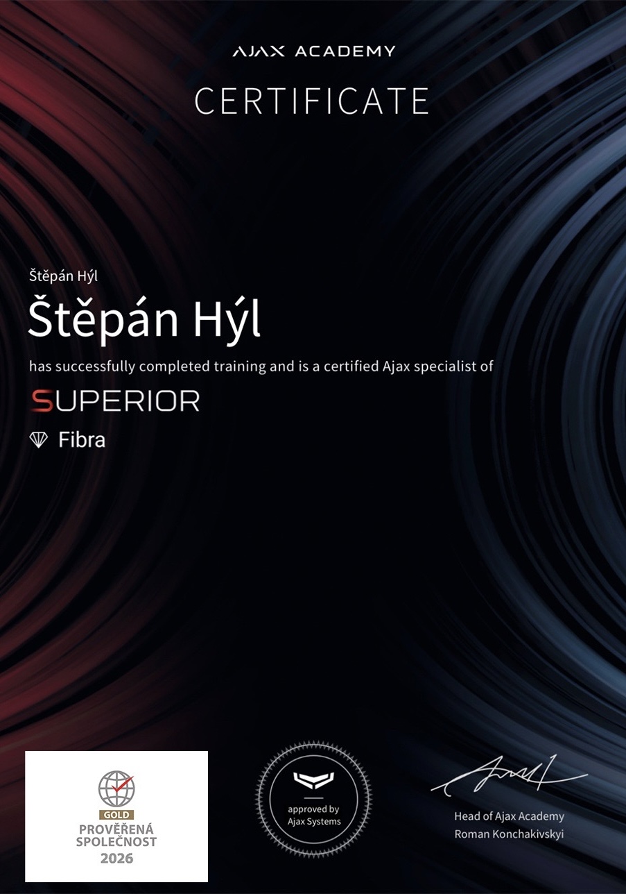 Jsme certifikovanou firmou na montáž zabezpečovacího systému AJAX